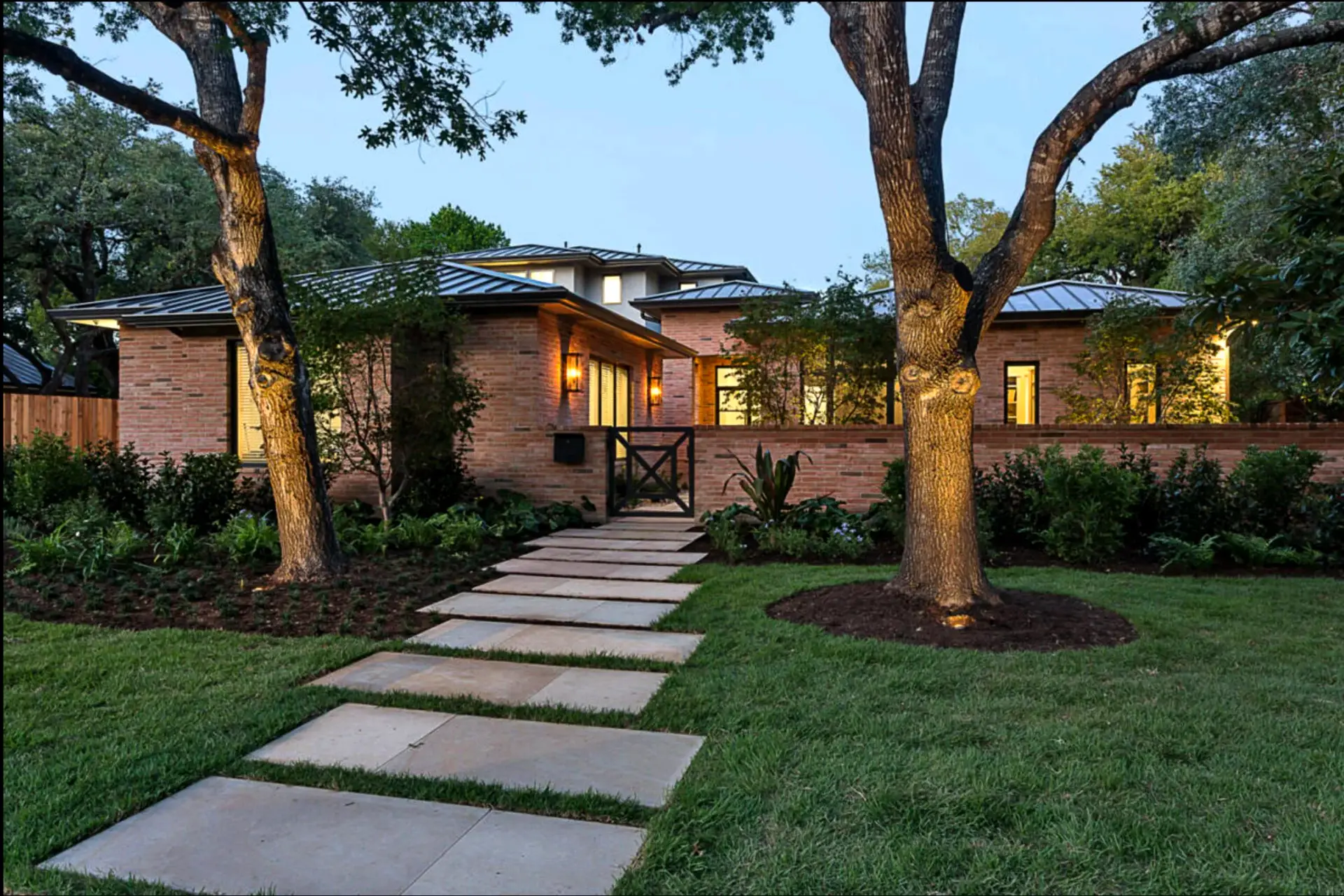 A large Austin residential compound with a substantial main house, a fully equipped guest house, and outdoor spaces arranged for entertaining and everyday family use.