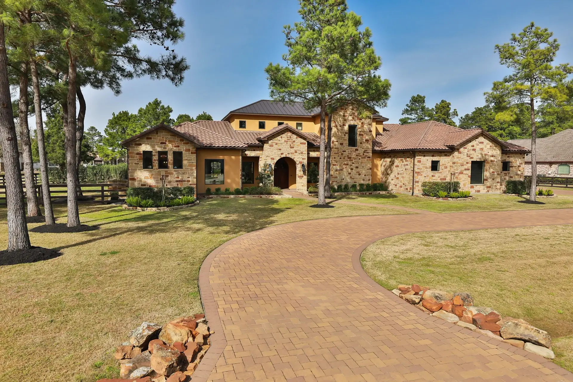 A luxury estate residence in Tomball that pairs Mediterranean character, expansive indoor-outdoor entertaining, and deeply integrated home technology across a large private site.