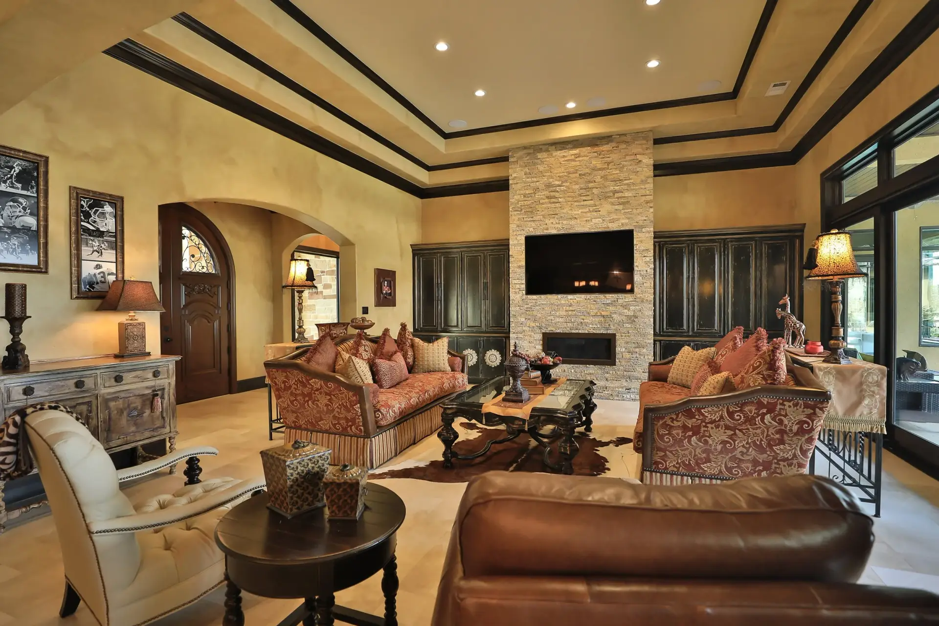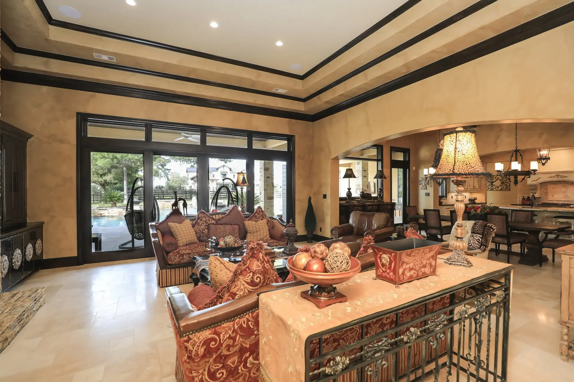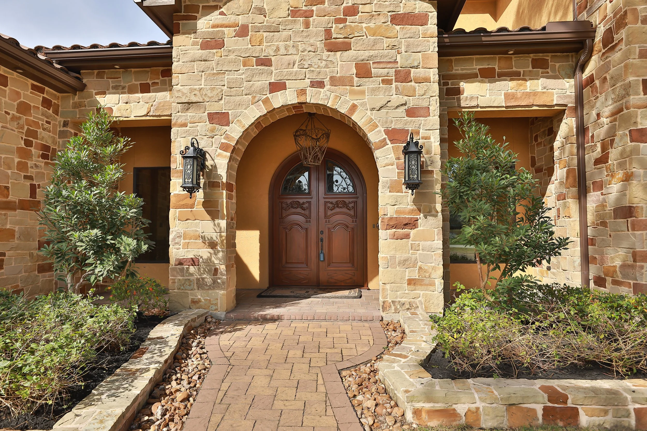 - Mediterranean detailing paired with high-end custom interior finishes