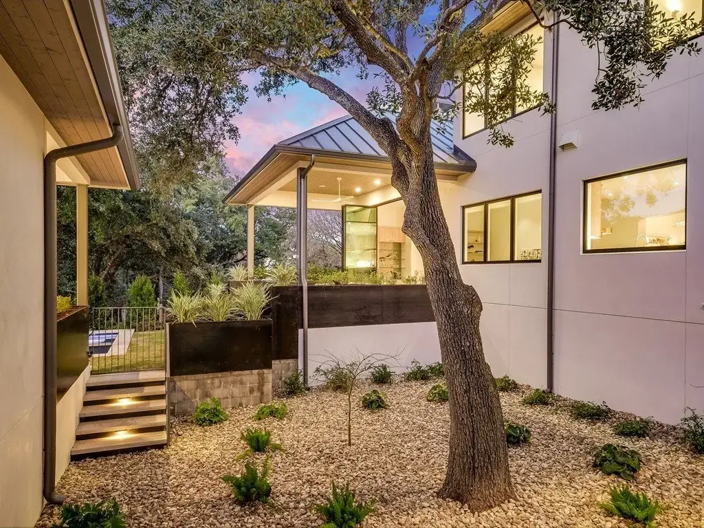 An adaptable Austin home with layered living zones, a screened porch, a flexible secondary suite, and a strong connection between the main living spaces and the outdoors.